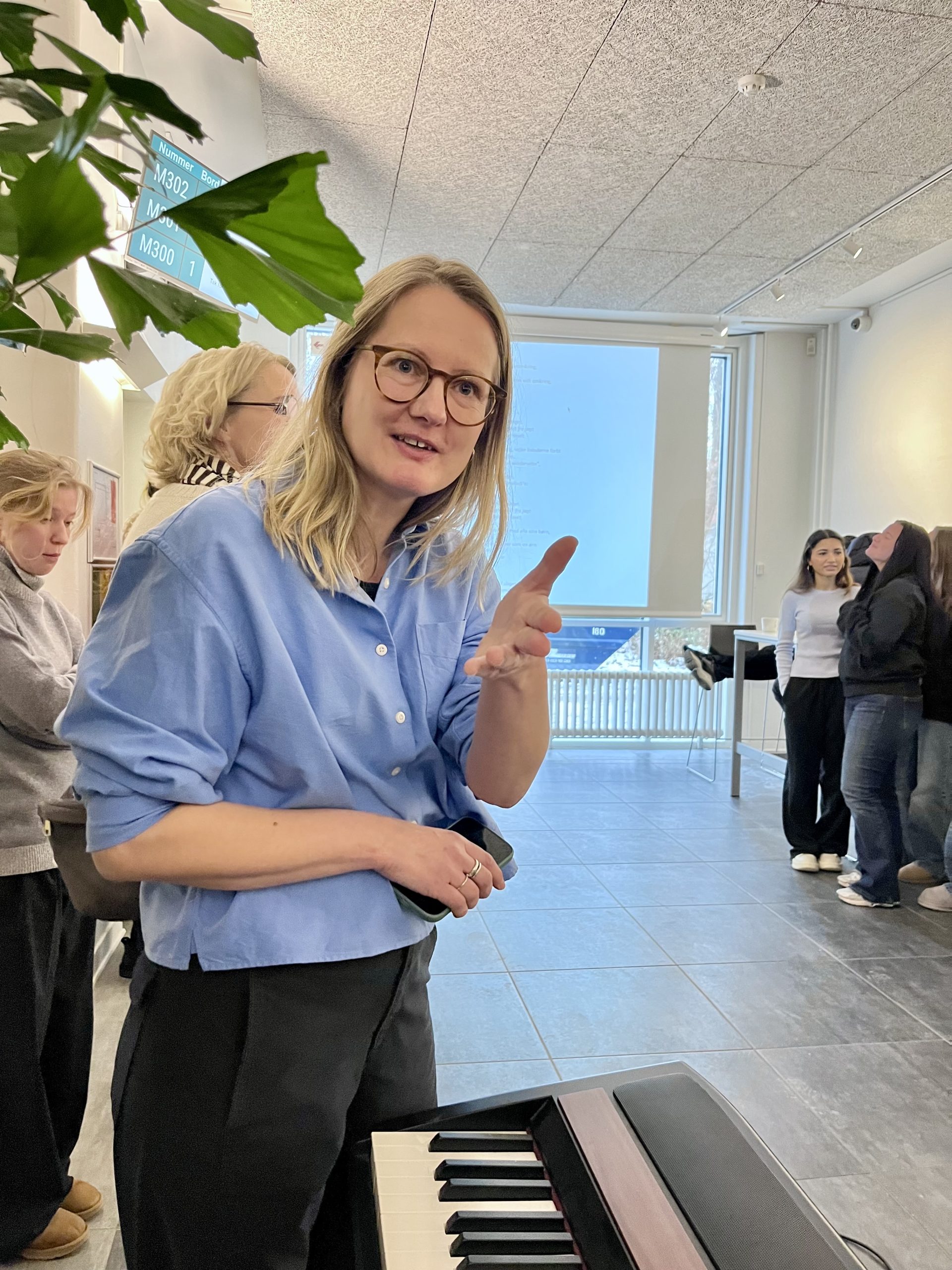 En af vores kursister, som har koreansk baggrund, kom straks op til klaveret, da hun så teksten blive projiceret op på lærredet.